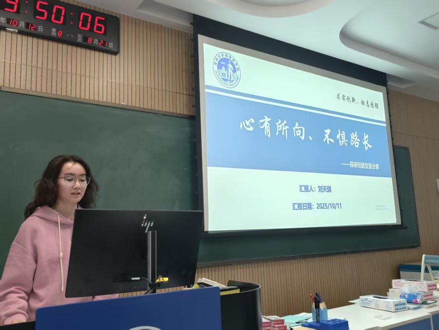 保研不仅是知识的比拼,更需要良好的心态支撑。已被报送至浙江大学的田春阳同学以自己的保研心路历程为核心,坦诚分享了过程中遇到的迷茫、焦虑与挫折,以及调整心态、克服困难的方法。她鼓励学弟学妹“脚踏实地,按部就班”地进行接下来的大三生活,不必过度焦虑未来,专注当下的学习与积累,同时积极相信付出会有回报;同时建议大家“勇敢踏出舒适圈”,主动进入实验室动手实践,积极联系老师,在挑战中提升自己,增强保研竞争力。她的分享传递了积极的备考心态,为同学们注入了信心与力量。