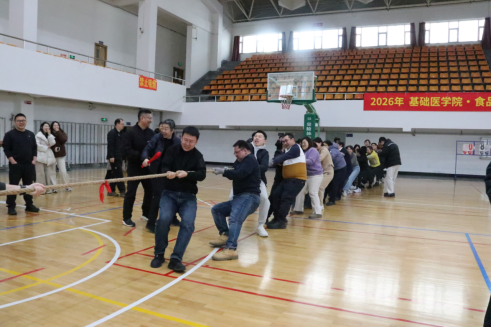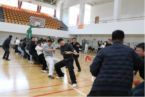 三人四足竞速项目中,队员们步伐一致、口号同步,在相互搀扶中向着终点迈进,每一步前行都彰显着团结的力量;拔河比赛更是将现场氛围推向高潮,两组队员们紧握长绳、同心发力,场边呐喊声、加油声此起彼伏,展现出两院教职工昂扬向上、团结奋进的精神风貌。